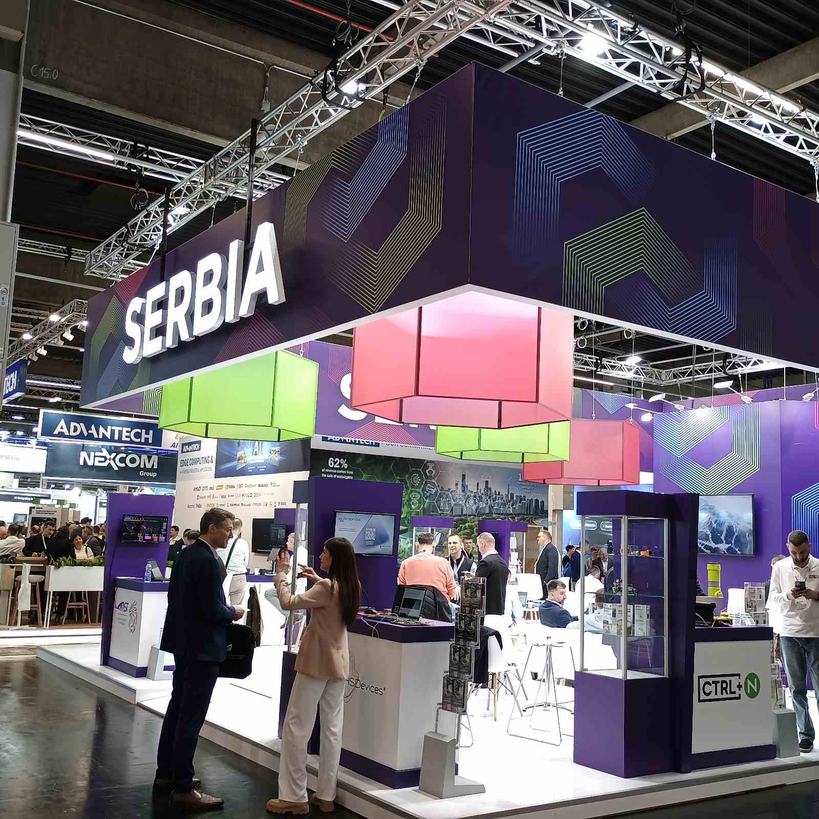 Zajednički nastup srpske IT industrije organizovan je uz podršku Razvojne agencije Srbije i Privredne komore Srbije (PKS). Na nacionalnom paviljonu Srbije predstavlja se deset kompanija: Digital Logic, HS Devices, Veriest, ARS Embedded Systems, Bitgear Wireless Design Services, MikroElektronika, Advanced Security Technologies, RT-RK, CTRL+N i Synchrotek, koje posetiocima sajma predstavljaju najnovija rešenja iz oblasti ugrađenih sistema, industrijske elektronike, razvoja softvera i IoT tehnologija.